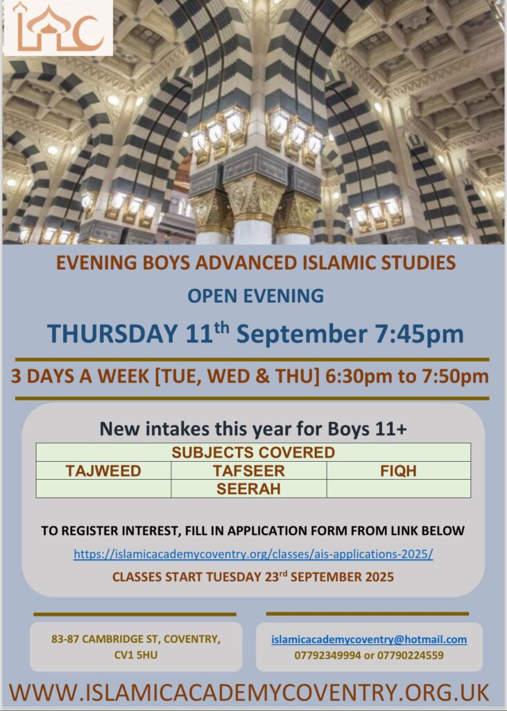 Every Tuesday after Asr Salah at Masjid Jalalabad, Smith Street, Coventry